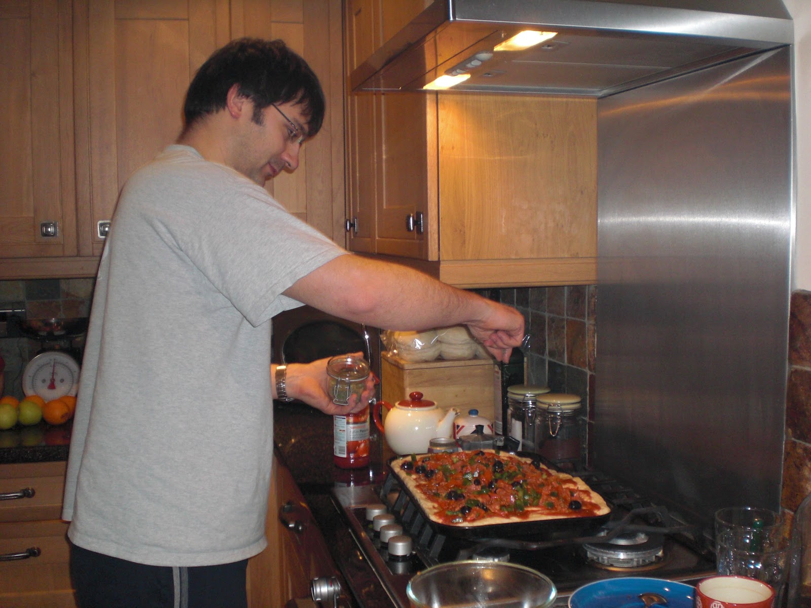 On Monday mummy made pizza dough and let daddy do the topping. Mummy is the dough woman and daddy has the artistic pizza spark. She thought you might like to see his creation as it was made, step by step. No idea why.
