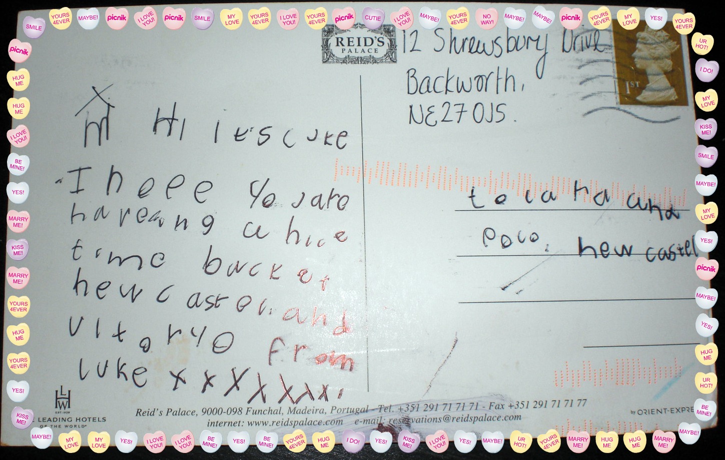 Another nice surprise today! My cousin Luke sent me a special post card all the way to Newcastle and it arrived on Valentine's Day! Thanks Luke! I will send you something back soon! xxx