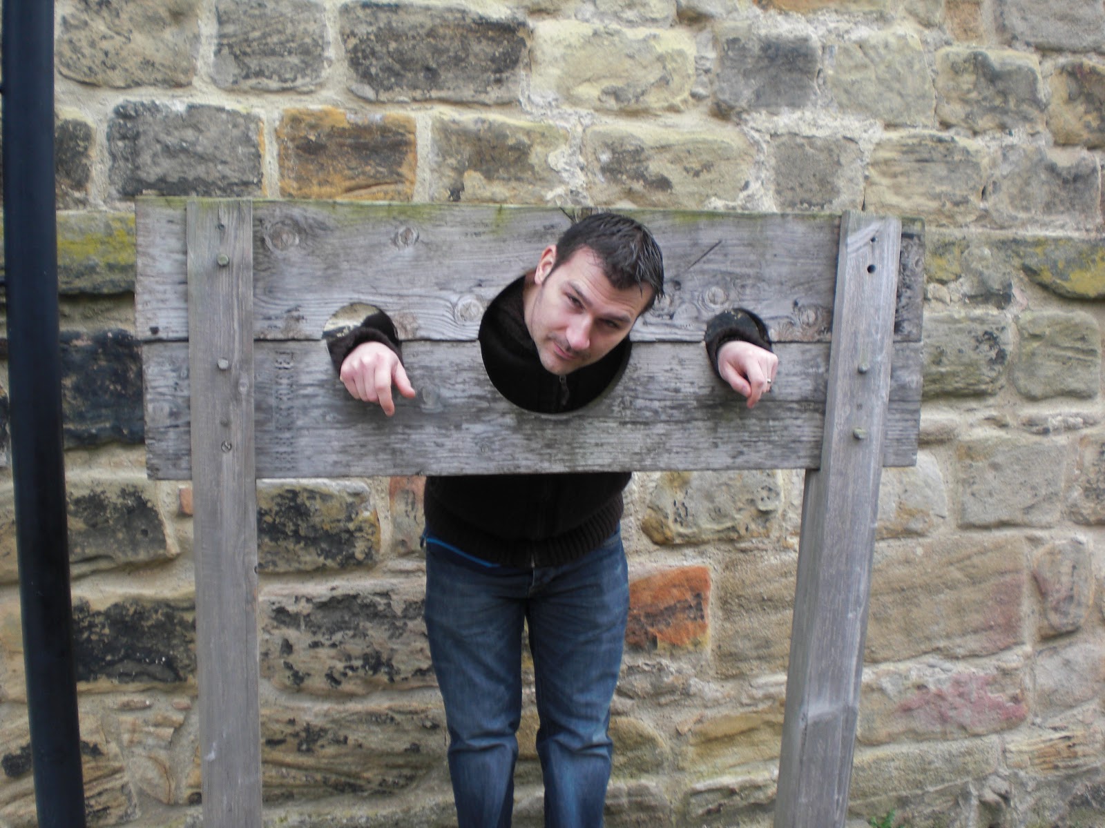 After lunch we took a look around the oldest purpose built prison in Britain. It was interesting and we also learnt about the border people who had a prtty hard time between the Scots and English fighting and raiding each others' land. Here we are in the museum with some funny looking people and a stuffed cat! My first museum visit!