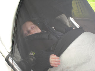 Today, to keep my education going (and because mummy and daddy like going out) we visited a farmer's market in Hexham. We bought some fresh bread, some primroses which daddy planted in the front lawn this afternoon, raspberry plants and some strawberries. We had a walk around Hexham abbey which is very pretty and I had a sleep in my pram. We then had a Greggs lunch in a pretty park: