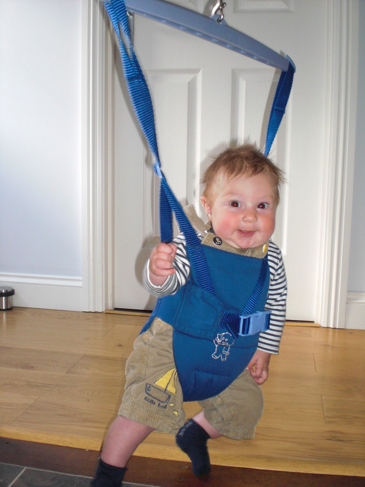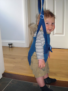 While I was there, Grandma and Grandad gave me a baby bouncer for the door. I was a bit skeptical at first, but as you can see I have very much warmed to it now and love to wobble around in there like a big boy. I like it best when mummy watches me and makes me feel proud of myself with constant praise and attention.