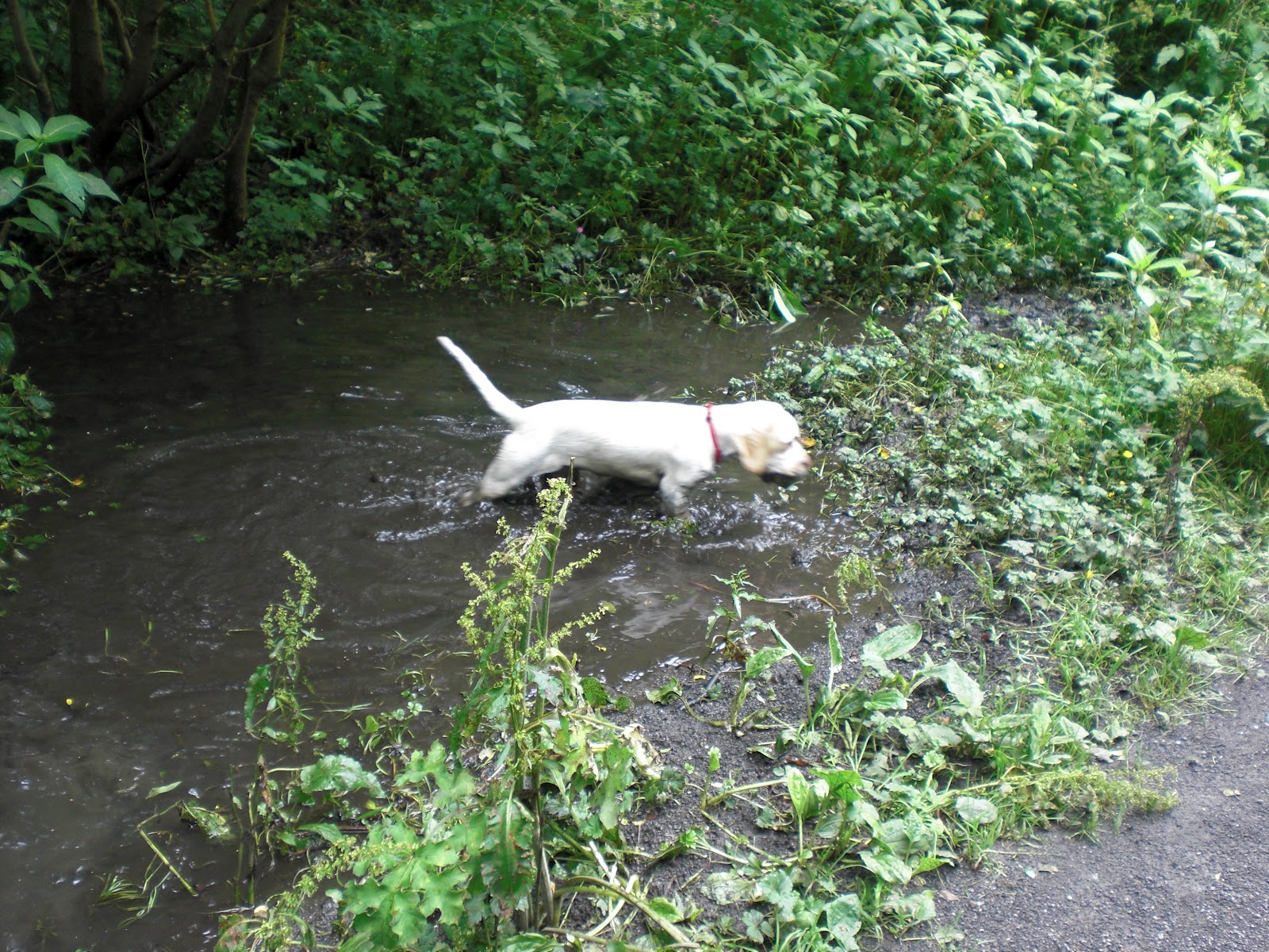 Before this sad affair began I had been having a good couple of weeks. Last weekend we went for a walk with Carys, Steve, Besty, Sarah and bump and (my favourite) Bella the dog. It was even quite sunny despite the rain all week in July. Here is Bella enjoying a little stream: