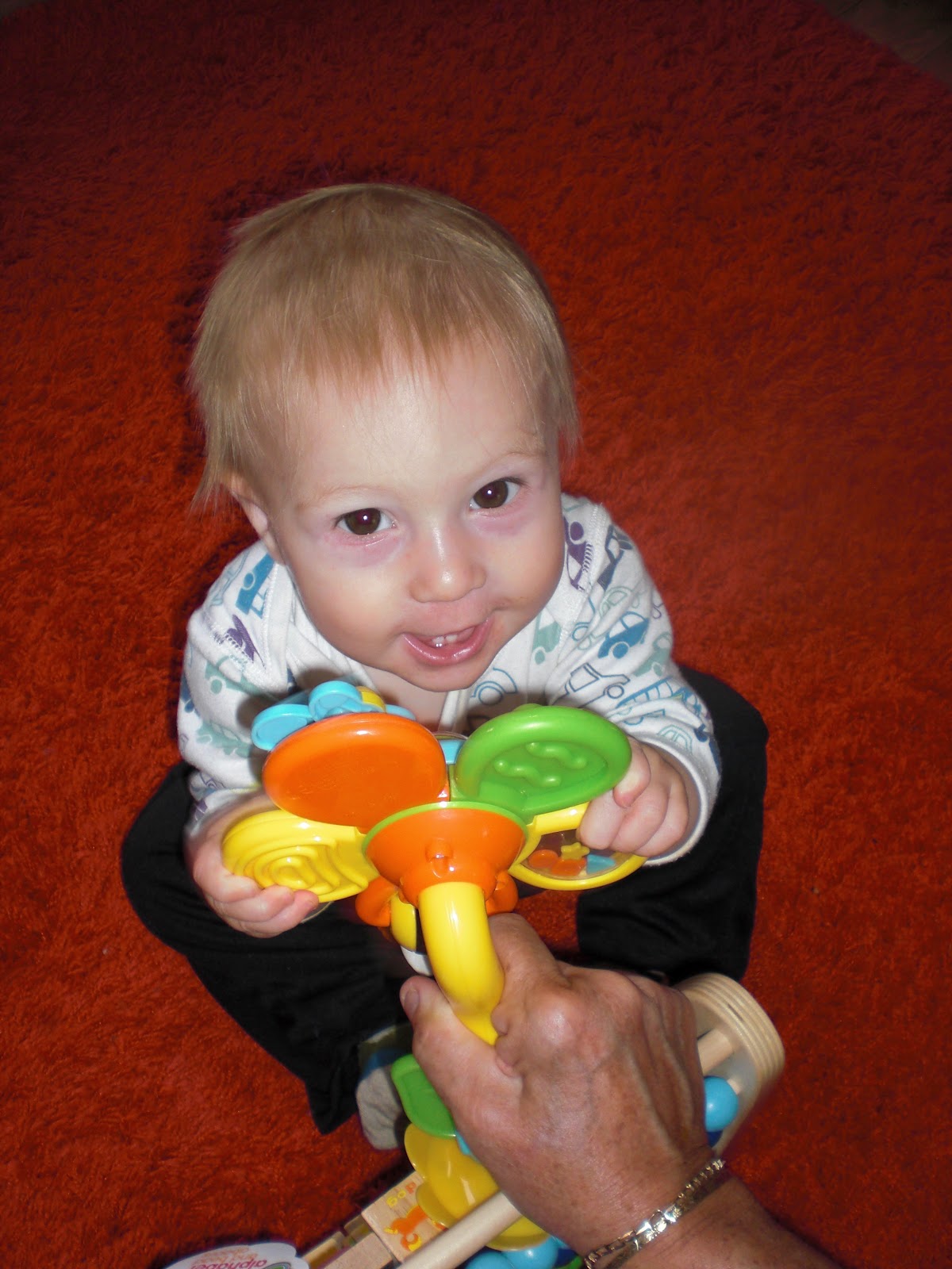 Back at home I made friends again with my old friend Sophie. I have tried gnawing on: teething ring, Sophie's ears, carrot, cucumber, hard plastic zips, metal rings, my own teeth, my finger, and bread. I've tried teething powder, calpol and gel. Nothing works but two little white marks are visible so hopefully I will be cheerful self again soon!