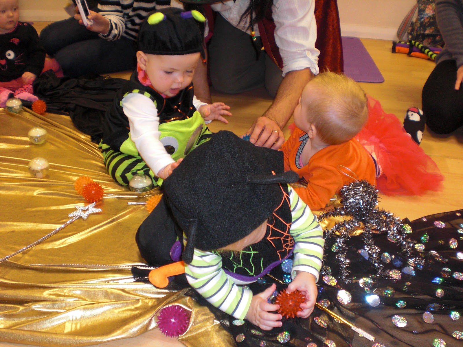 Now other than lots of parties last week, the weekend marked the start of the Halloween celebrations. Mummy and Daddy celebrated by pumpkin carving with Auntie Colette and Uncle Simon. Grandma and Grandad took me for a walk to the park in the mean time. I was quite impressed by their efforts on my return, although no one would let me touch them which was a shame! Later in the week I went to Jittabugs and we had a Halloween themed dance around and play with some toys. We all dressed up which I found a little confusing if I'm honest but the grown ups seemed to find it cute.