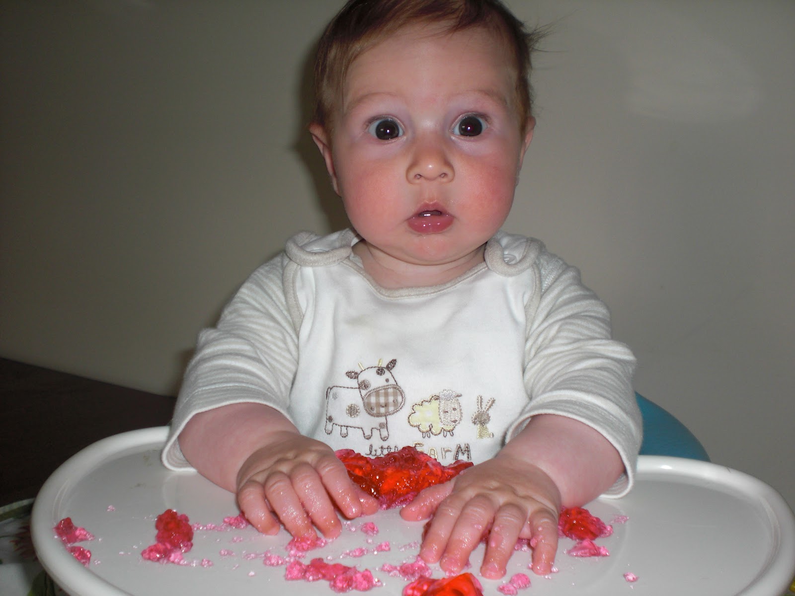 | My first time touching jelly! I liked it and then I didn't like it any more! |